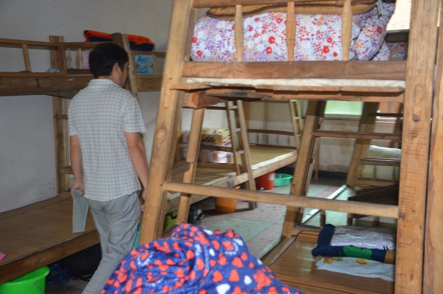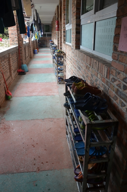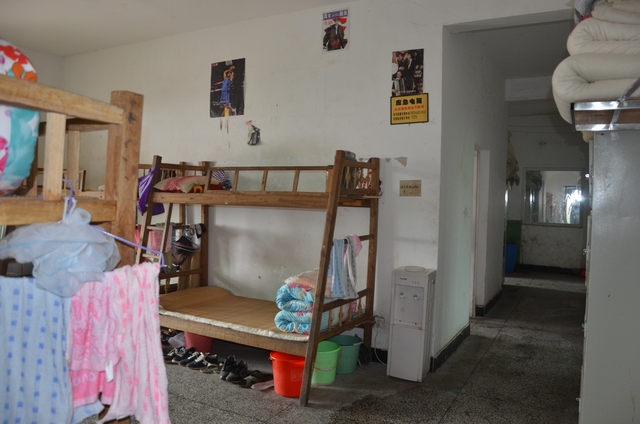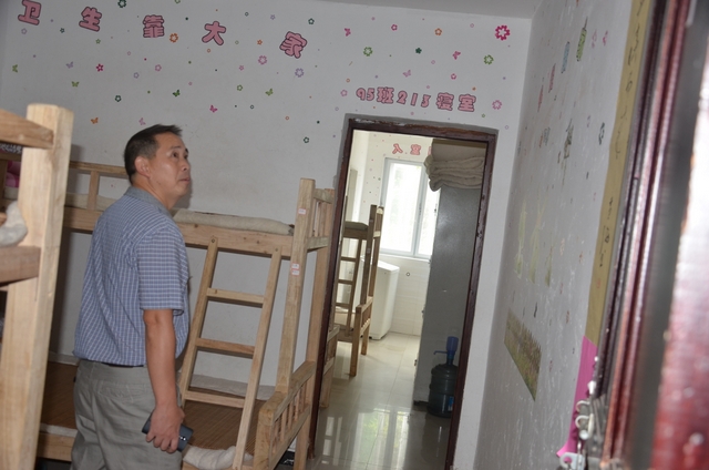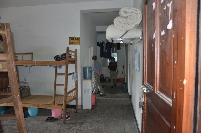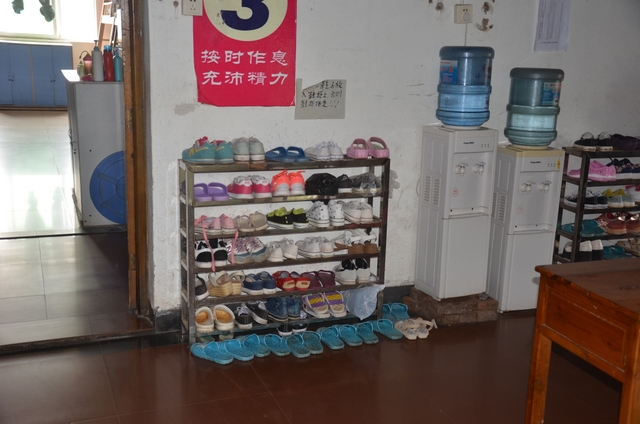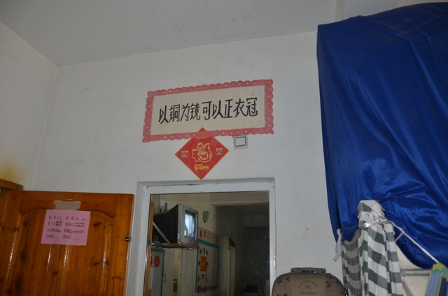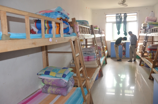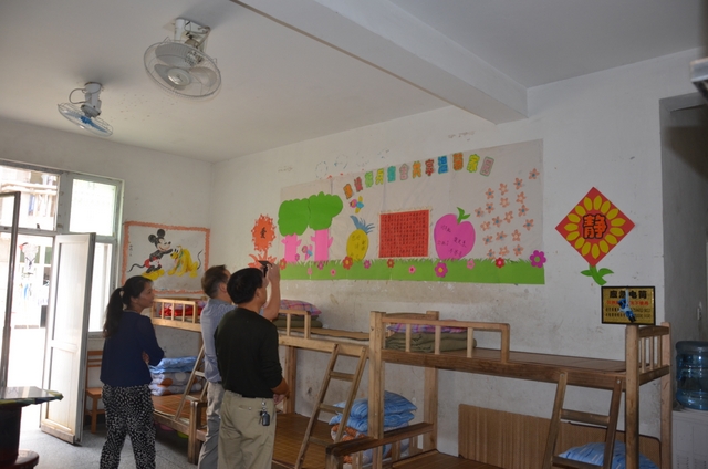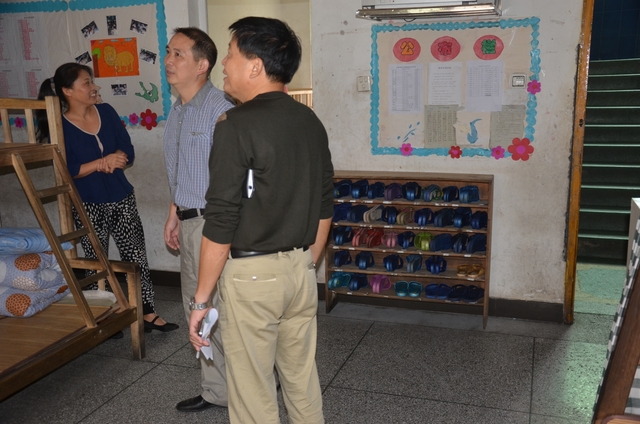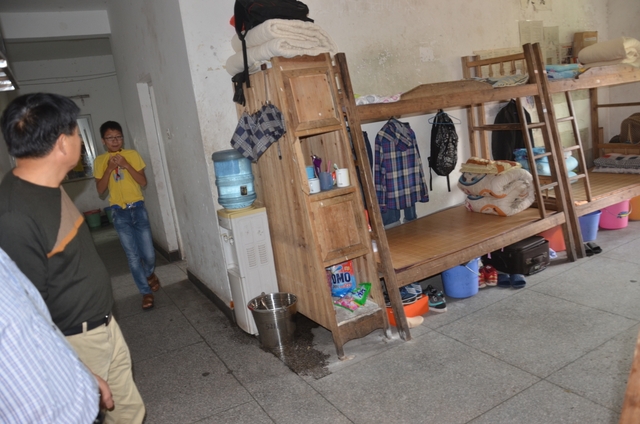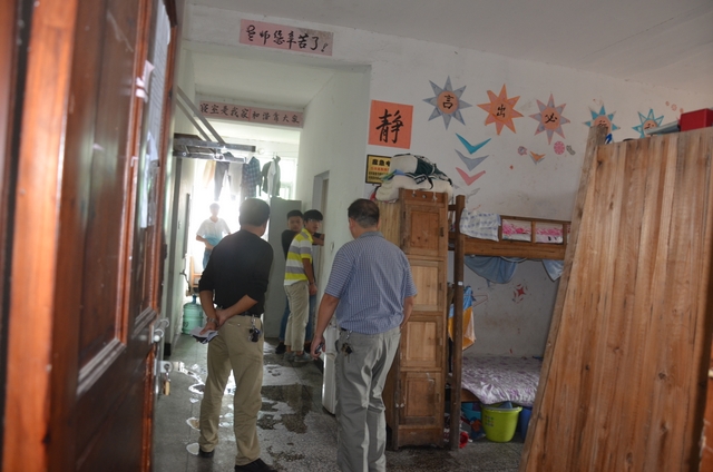 检查分八组进行。检查当中,笔者同周文根主任到几栋寝室去查看。所到之处,地面洁亮,物品摆放整齐,饮水机、电视机、门窗等擦拭干净,墙面整洁,卫生间无异味。西苑(小学部)、九号楼(女生)等最为出色,六号楼(高中部男生寝室)较以往也有显著进步。