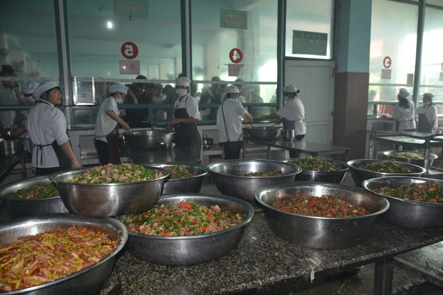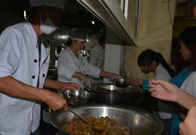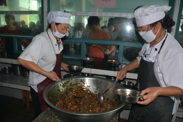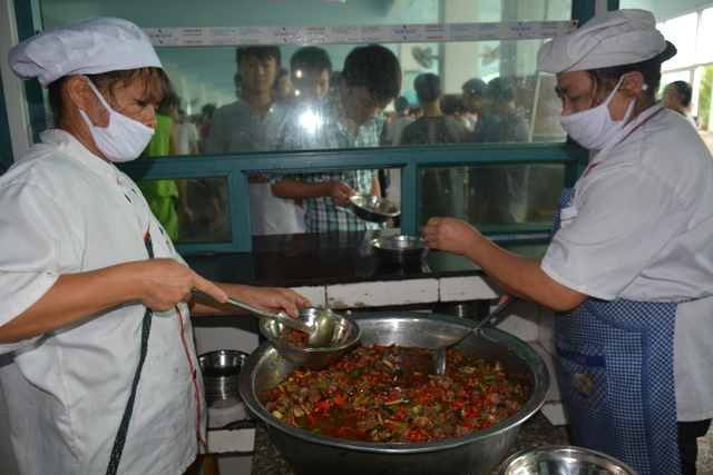 虽然是侧脸,也看得出食堂师傅溢出的笑容。