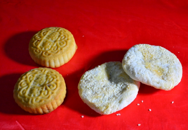正源的月饼有二种:一种是薄麻饼,一种是厚莲蓉饼。
