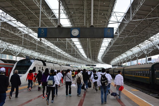 北京北站。励志队伍将这里坐动车去八达岭长城。