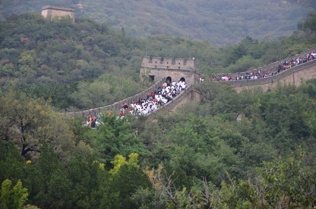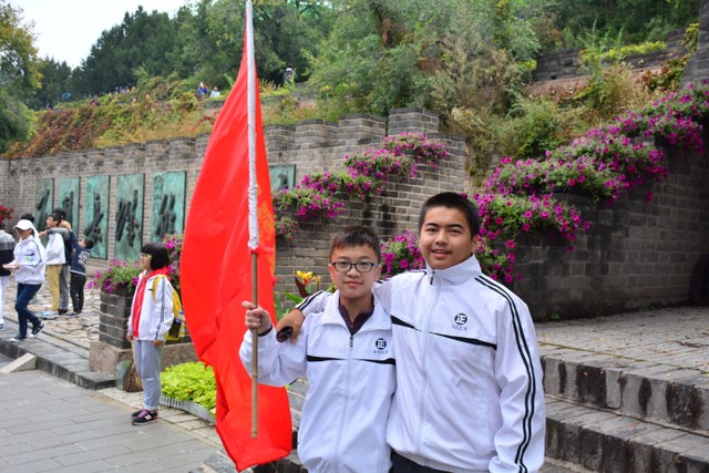 过了长城入口,正源师生们开始奋力攀登长城。正源学生们统一身着白色秋季校服, 长长的队列仿佛一条银蛇,在人群中非常醒目。“咦,这是哪个学校的学生吧,看起来真精神……哦,是正源学校。”许多游客议论纷纷。