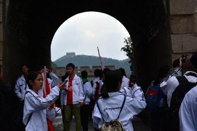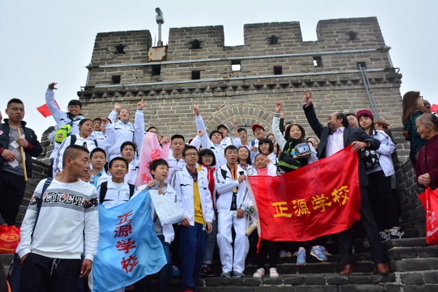 步行、地铁、动车,几经波折,正源北京励志行的队伍终于在上午9点左右抵达北京八达岭长城下。面对气势恢宏、延绵不绝的长城,正源师生们的激情被点燃,大伙再次高声喊出口号。一句“不到长城非好汉,学不成名誓不还”振聋发聩、气势磅礴,表明了他们的坚定信念与远大志向。