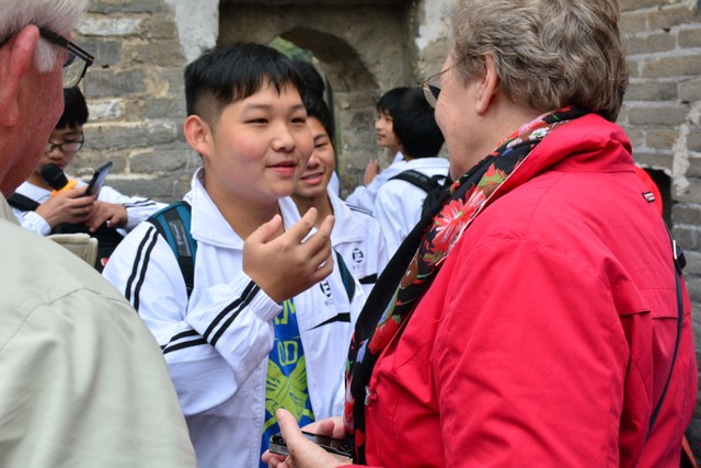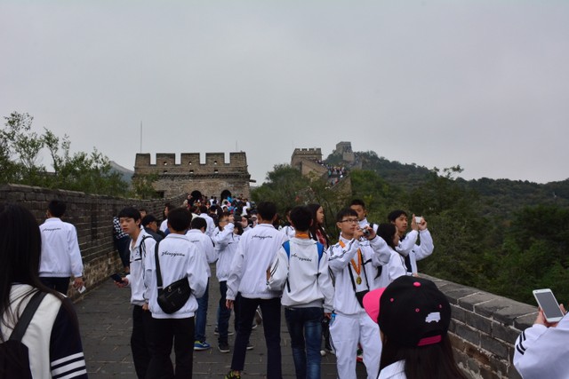 对于攀登长城,同学们的感受各异。H99班的黎鑫同学说:“真实的长城比想象中的更加壮观,但是看到长城城墙上游客刻的字,心里感到气愤。”“爬长城有点辛苦,但是我还是坚持爬到顶端,因为我想磨练自己的意志。”H101班刘鹏程同学如是说。