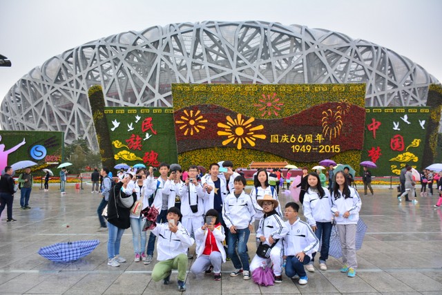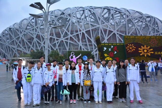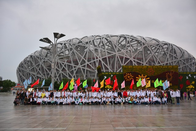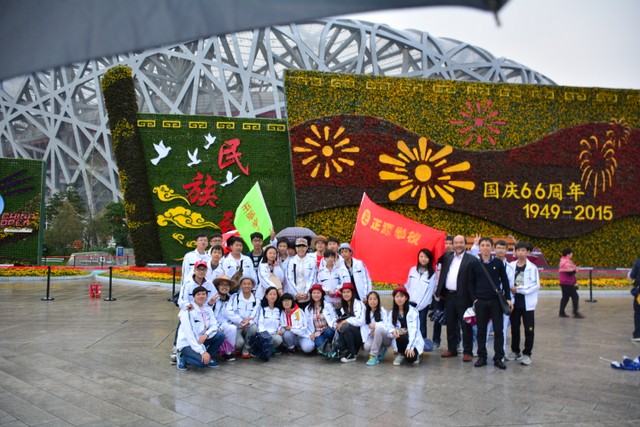 在公园里,鸟巢、水立方、国家体育馆等建筑现代感十足,正源师生们纷纷掏出相机,拍照留恋。鸟巢前面,在罗校长的带领下,师生们排着整齐的队伍,高呼口号“更高、更快、更强,正源学校。”这句话既是奥领匹克精神的精髓,也是正源学校追求的目标。
