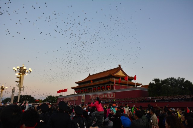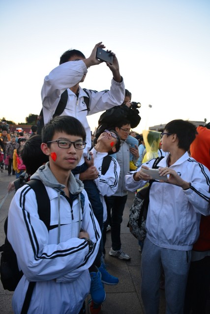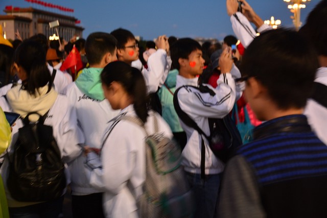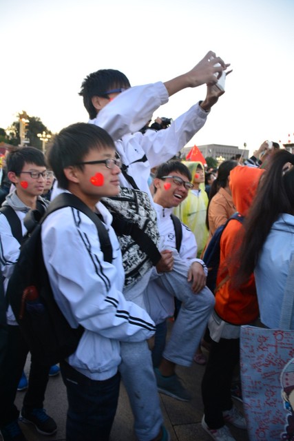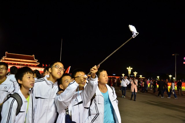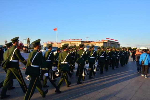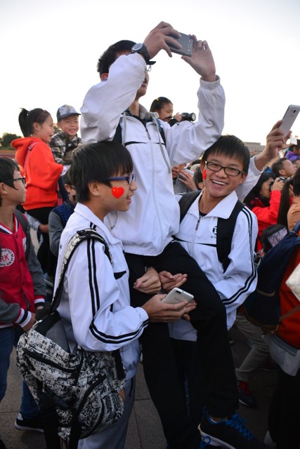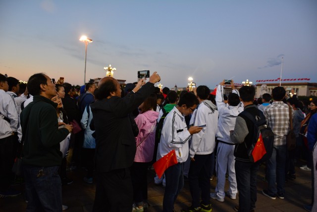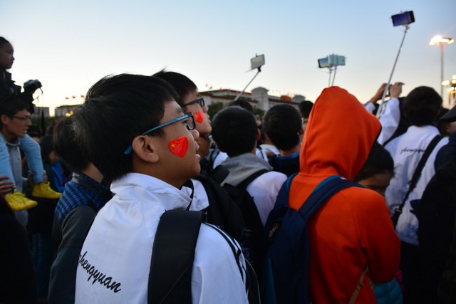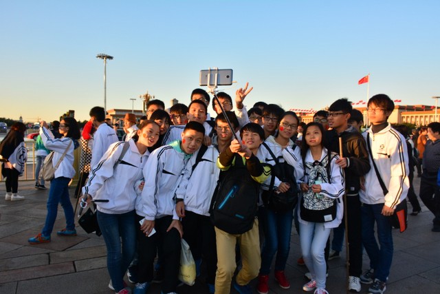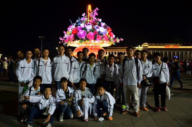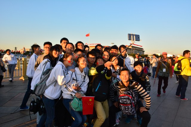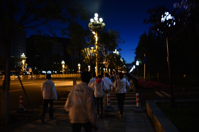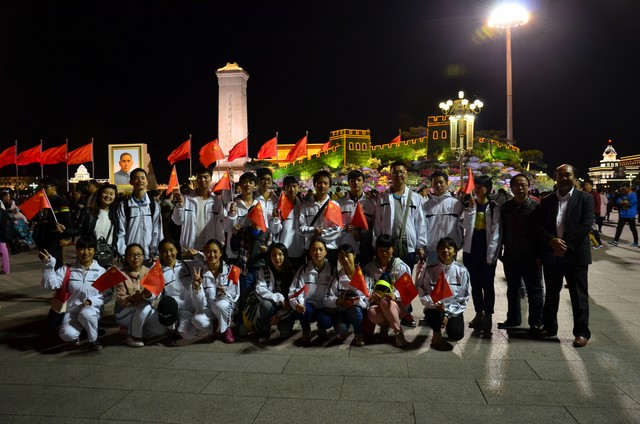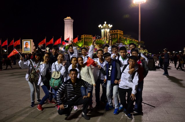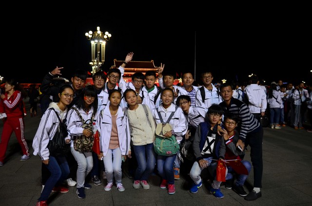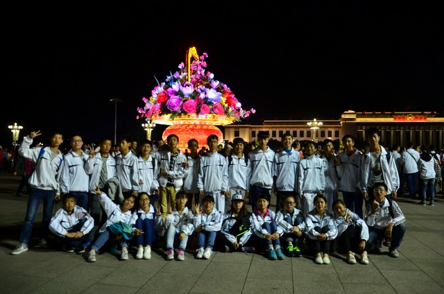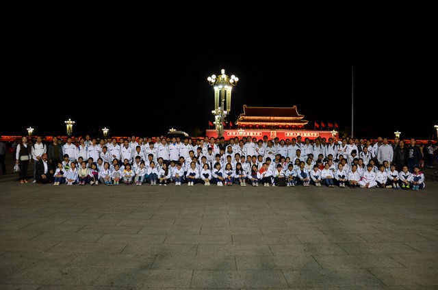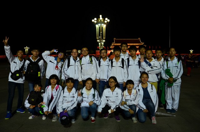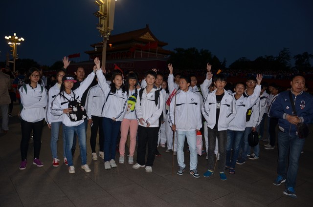 天还未大亮,励志行师生赶地铁前去天安门看升旗。