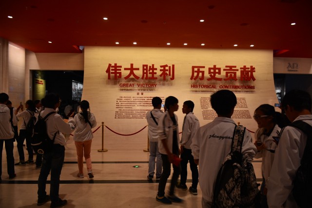 在中国人民抗日战争纪念馆里,大量生动翔实的史料,都雄辩地告诉我们,没有中国人民的艰苦抗战,就没有世界反法西斯战争的胜利;看不到东方主战场的辉煌战果,就无法估量反法西斯战争的全部价值。在规模空前的世界反法西斯战争中,中国抗日战争开展时间最早、持续时间最长,中国战场长期牵制和抗击了日本军国主义的主要兵力,对日本侵略者的彻底覆灭起到了决定性作用,为夺取世界反法西斯战争和第二次世界大战的胜利作出了不可磨灭的贡献。中国人民为世界反法西斯战争作出的贡献,赢得了崇高的民族声誉,赢得了世界爱好和平人民的尊敬。