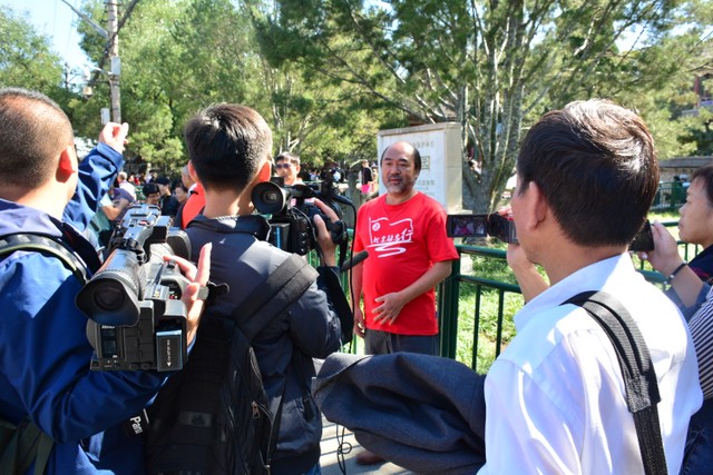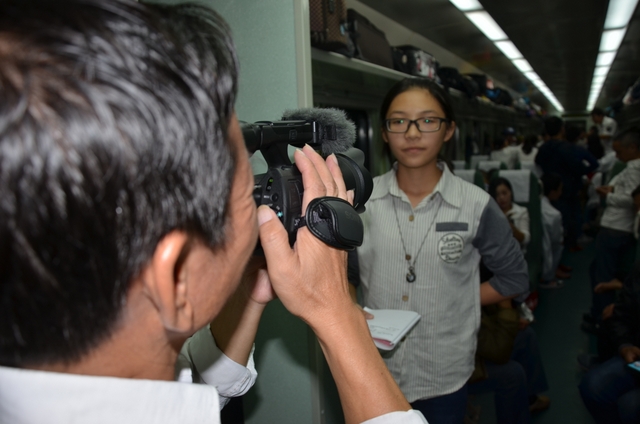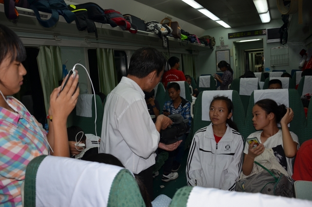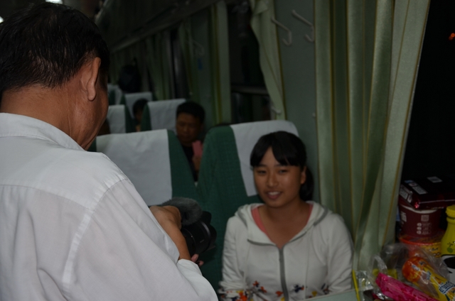 10月3日晚,在北京到长沙的T1次列车上,励志行学生接受采访
