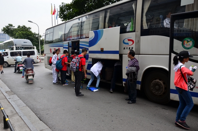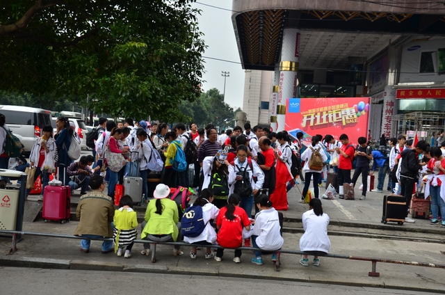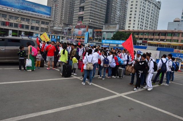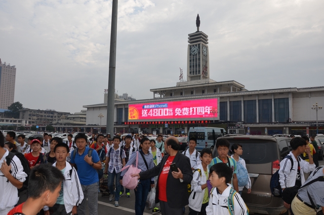 长沙火车站广场集合,清点人数,等待学校派车来接。