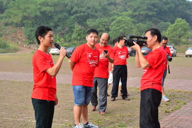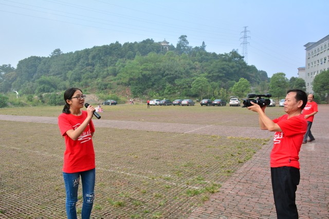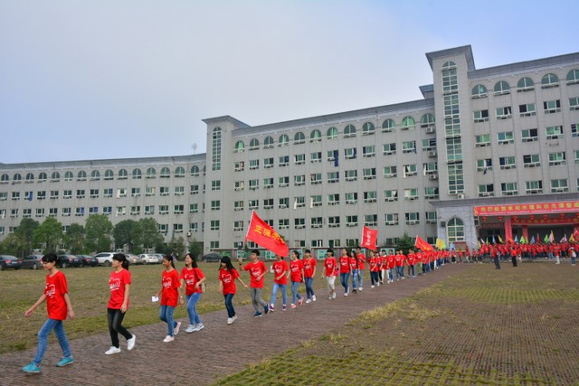 身着红装,高擎红旗,同学们欣然踏上励志行征程