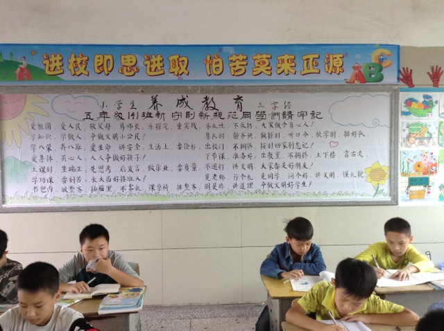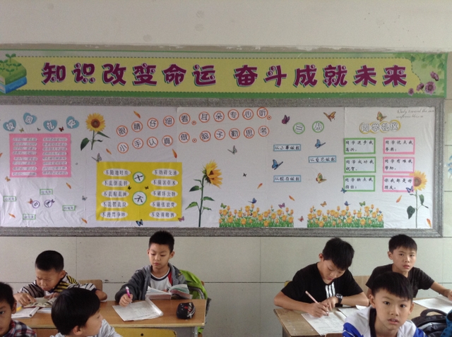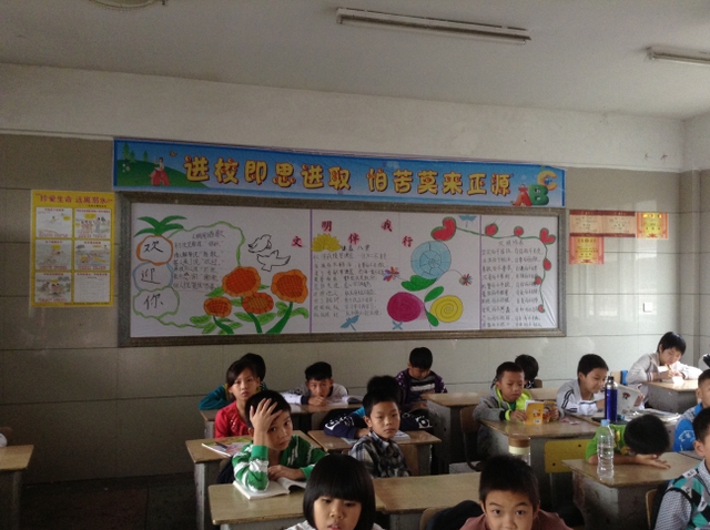 活动中,各班学生在班主任老师的指导下积极踊跃参与,各展才能,板报设计、教室布置各具特色。有的班级根据学生喜好,以剪贴的方式将贴画贴上了墙壁,教室顿时充满了欢快愉悦的气氛;有的班级同学喜爱书法,便在墙壁上一展自己的墨迹,引得每一位上课的老师都忍不住驻足观赏,连连称赞;有的班级将“大自然”搬到了教室内,他们用自己喜爱的颜料把板报涂成了动物植物园;还有的班级用生动有趣的班训表达自己崇高的心愿与目标。