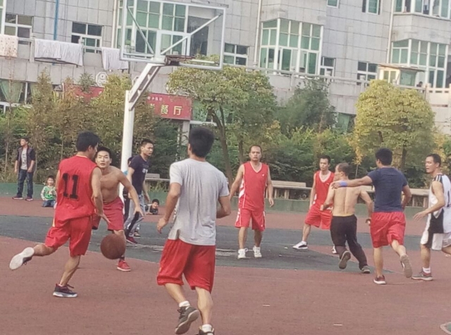 篮球赛以年级为单位,分四组以循环赛的形式进行。今天进行的是一年级老师与四年级老师的比赛,比赛一开始,双方队员迅速进入状态,个个雄姿英发、激情高涨。经过激烈的拼抢、投篮,最终,四年级老师获胜。