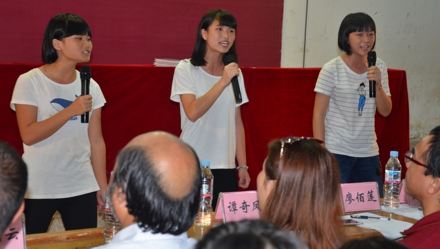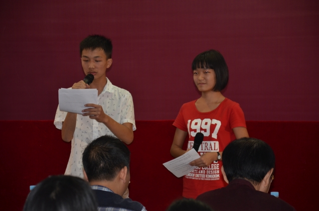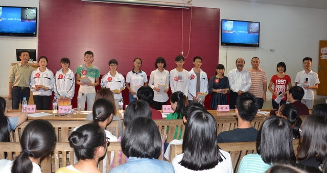 10位选手就拟设的“What I have learnt from textbooks” , “How I learn English words and phrases ”,“Learning English is fun”三个题目做了精彩演讲。他们的表现各具特色,可圈可点,有的慷慨激昂,有的娓娓道来,都洋溢着青春的激情与活力。通过评委现场评分,最后由刘梦诺、李帅、伍绍金分获前三名。
