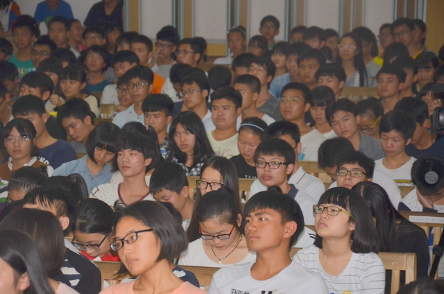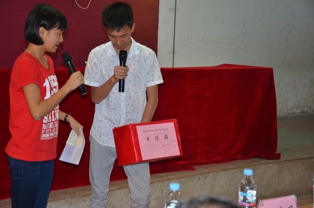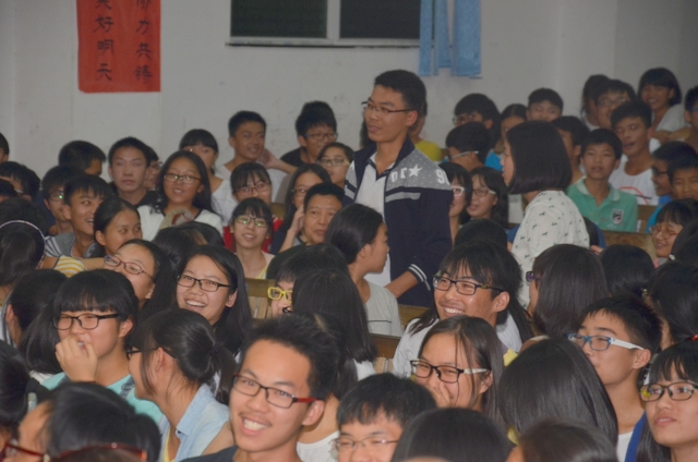 此次比赛旨在提高提高同学们学习英语的积极性,同时也为选拔优秀苗子参加衡阳市英语演讲大赛作准备。今晚的比赛系校内决赛,高二年级英语备课组通过此前的初赛选出了刘梦诺、李帅、伍绍金、谷钰婷、罗丽君、陈姝、梁志威、曹洁、黄素娟、黄晓燕等10位同学进入今晚现场比拼。观众席上,坐满了来自高二年级的学生。