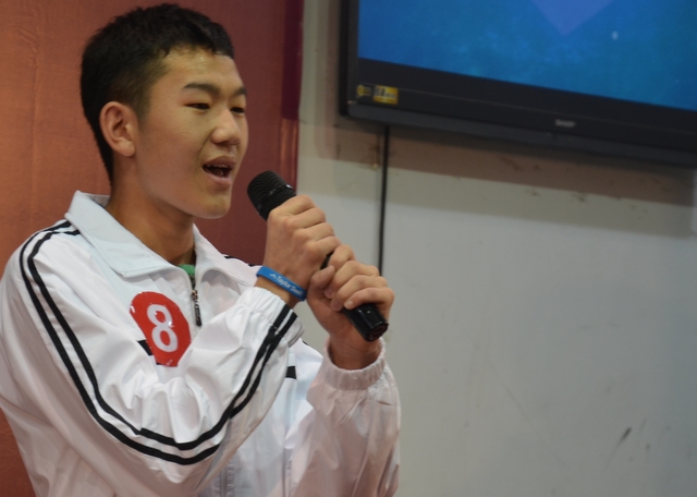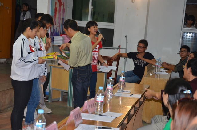 为活跃比赛气氛,鼓励全员参与,比赛设置了唱英语歌曲和幸运观众奖环节,获奖的幸运观众有得到奖品的同时得用英文发表获奖感言。有意思的是,竟然有一位同学因为不愿意用英文发表获奖感言放弃了获奖资格。