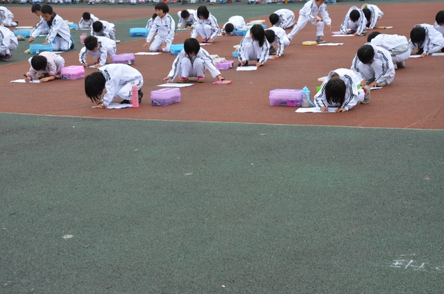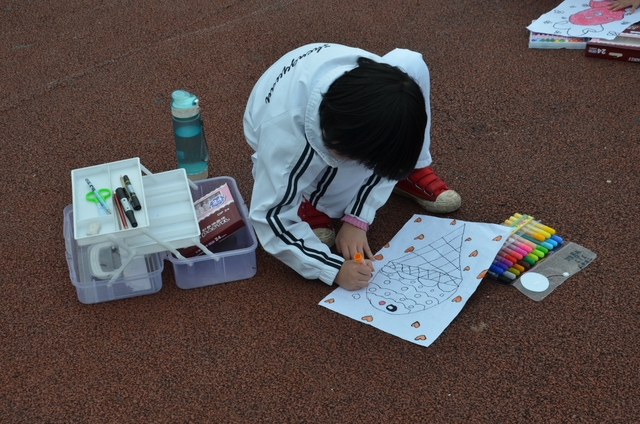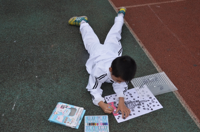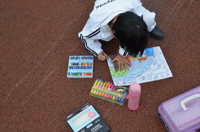 该年级主任刘海英介绍,本次现场绘画活动匠心独运——由个人绘画和年级拼接画两部分组成,既锻炼了学生的动手绘画能力,丰富了想象力,彰显了个性,又增强了学生的集体意识、环保意识,培养了学生的团结协作精神。
