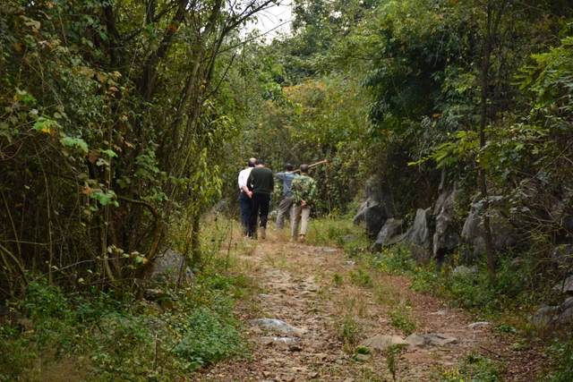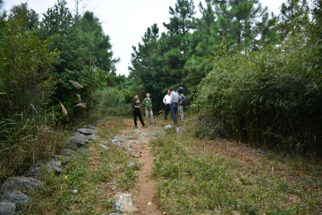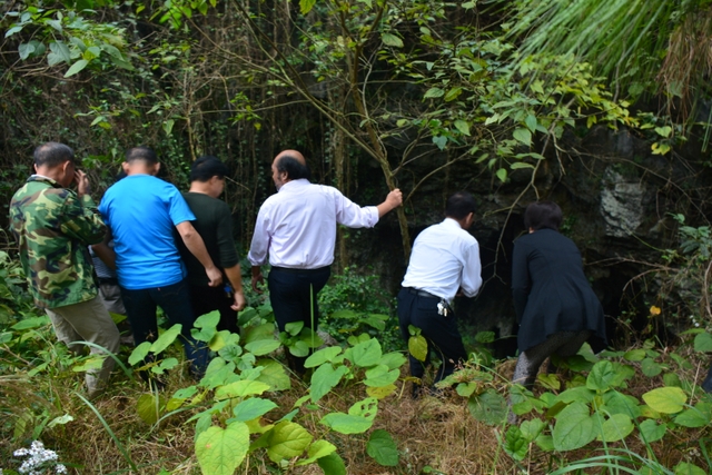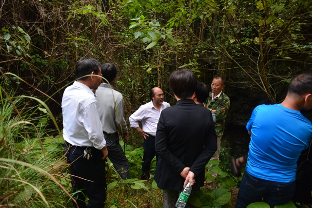 值得欣慰的是,余庆乡党委政府有意保护五家岩,岩洞口周边植满了树,一般人很难找到洞口,还禁止人们随意到洞子里去。凭借我们微薄的力量,我们今天只是来看看洞口。洞口大概有十来人高,里面阴森森的。李教授试图下去洞里,被大家劝阻而作罢。