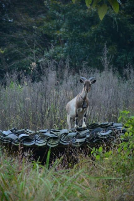 这家伙不信迷信,竟站在神屋上,像一尊雕塑。