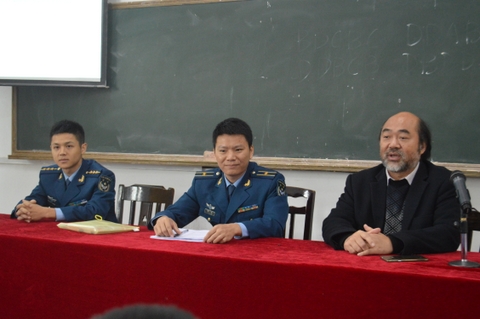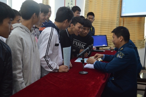 空军招飞局广州选拔中心的雷鸣、谢鹏两位干事组织了此次活动。他们就招飞工作的五个标准、四个阶段等作了宣讲,并就同学们所关心的问题作了解答。