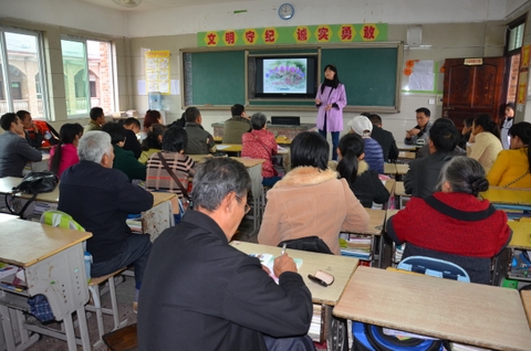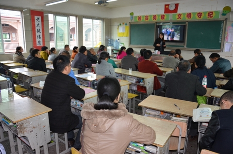 班级家长会后,家长统一到食堂品尝正源土菜。饭后,都到学校报告厅观看学校活动视频,听讲座。