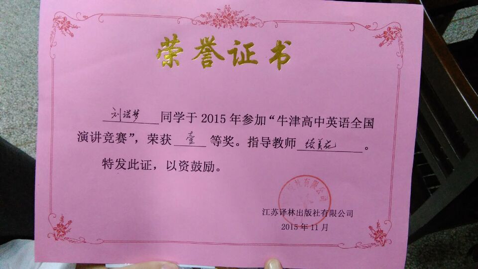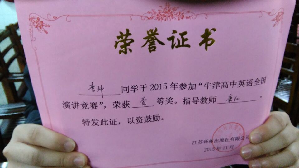 为了参加这次比赛,耒阳市教育局英语教研室于本月14日在耒阳市二中举行了耒阳赛区英语演讲选拔赛,我校H76班刘诺梦、H80班李帅两位同学,一路过关斩将,夺得高二年级组第一、二名,H82班伍绍金同学获得了三等奖。他们的指导老师分别为续美花、康红和李明,同时获得辅导证书。