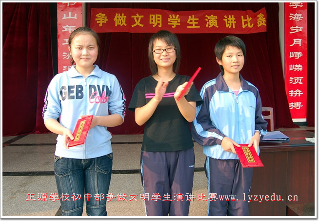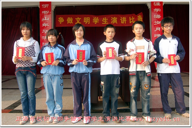 为了构建和谐校园。营造良好的校园文化氛围.加大整顿校风校纪力度,推进制度建设,同时展现广大师生的风采,10月27日,正源学校政教处、初中部联合举办一场以“争做文明学生”为主题的演讲赛。