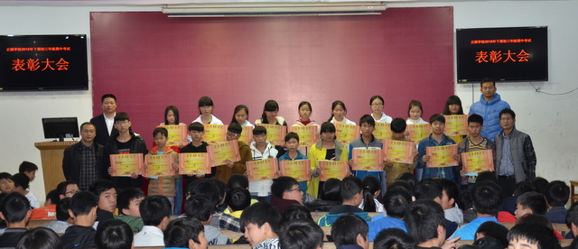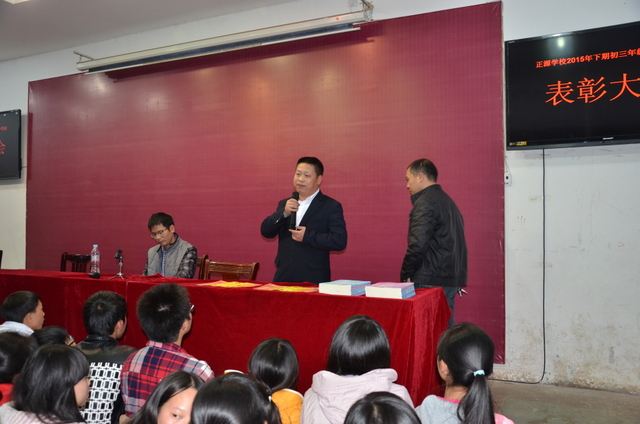 年级主任倪南辉、年级教务主任梁初贤等主持表彰会。