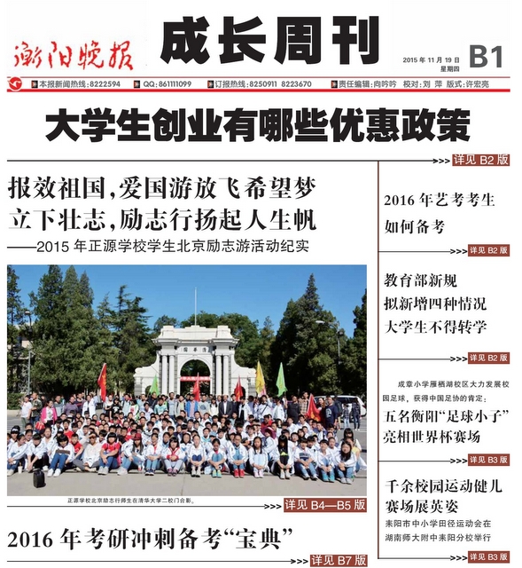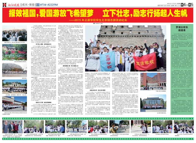 衡阳晚报:报效祖国,爱国游放飞希望梦,立下壮志,励志行扬起人生帆--2015年正源学校学生北京励志游活动纪实