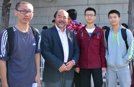正源学霸与罗校长相聚在清华。左一为2013年高考省理科第一名清华大学刘凡犁,左三为2012年高考衡阳市理科第一名北京大学潘军,左四为2015年高考耒阳市理科第一名北京大学谭智威。
