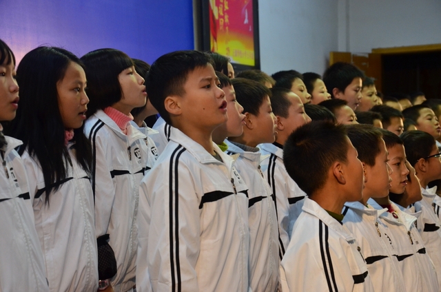 为了激发每一位孩子的爱国热情,铭记革命历史,弘扬民族精神,同时也为了进一步丰富校园文化生活,在各班班主任的精心组织下,全体学生积极参与,每个班级都准备了必唱曲目《游击队之歌》和自选曲目。比赛为全体师生奉上了一道丰盛的精神食粮。《歌唱祖国》、《团结就是力量》、《少年先锋队队歌》等一首首脍炙人口、广为传唱的红色歌曲,唱出了中华名族不屈不挠、自强不息的民族性格;一曲曲革命经典旋律,重温了革命之路;一首首磅礴铿锵的歌曲,抒发了对祖国的深情。整个报告厅生机勃勃、歌声飞扬,掌声如潮。