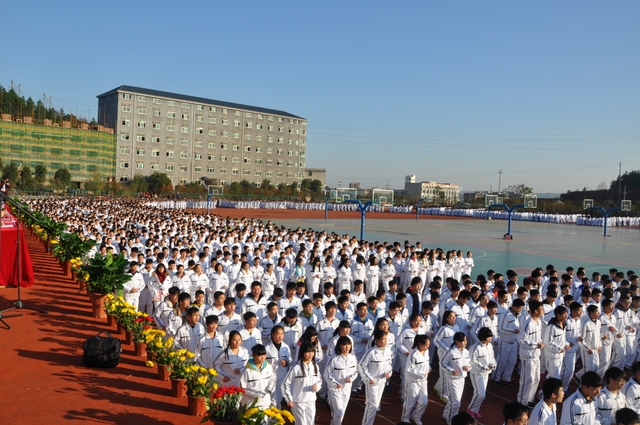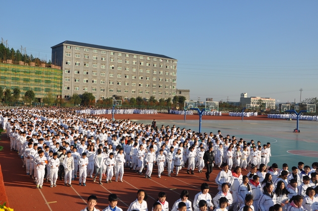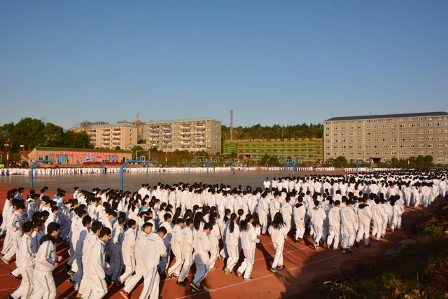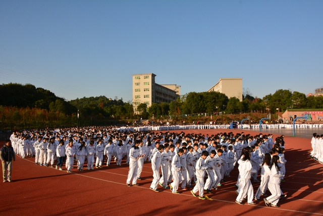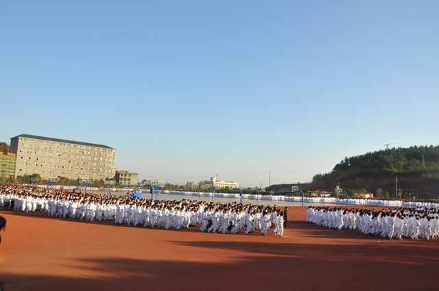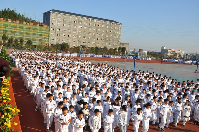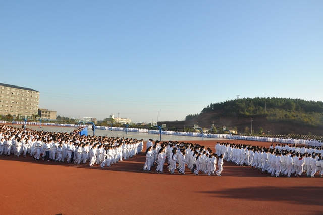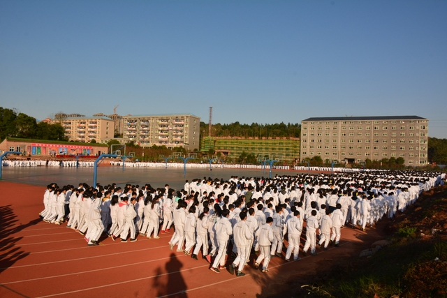 首先举行的是万人跑操。初中部91个班 4986名、高中部85个班4530名学生,共计176个班、9516名学生,身着白色运动装校服,共同践行正源学校初、高中部万名学生大跑操,郑重接受学校领导的检阅,向社会各界来宾汇报。“咚咚咚咚”的脚步声,地动山摇,震撼乾坤;“一、二、三、四”的口号声,势遏流云,响彻云霄。