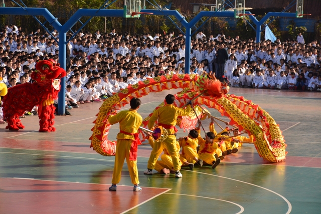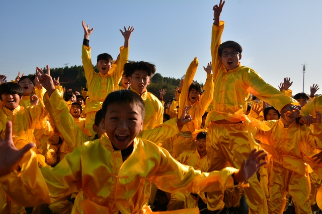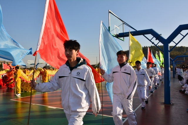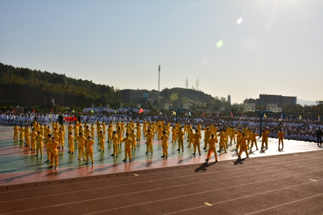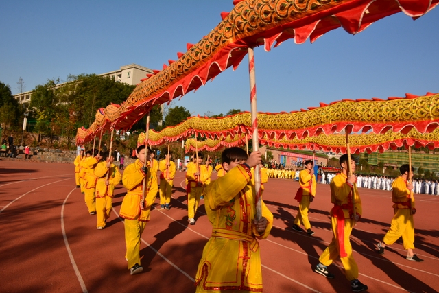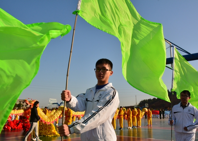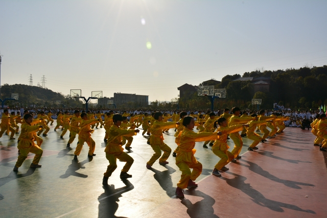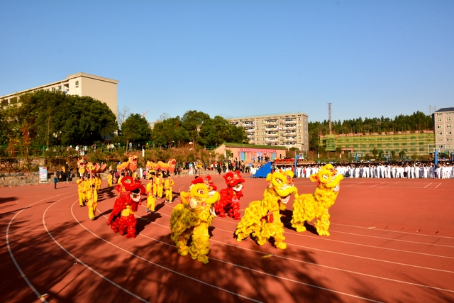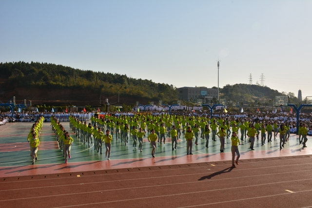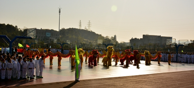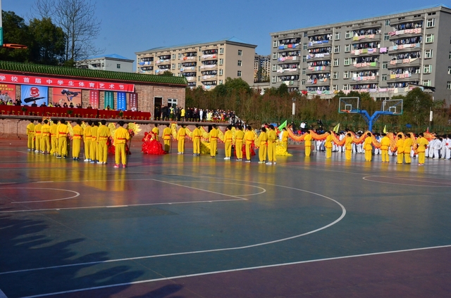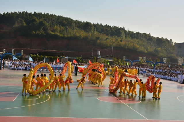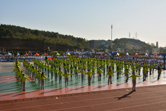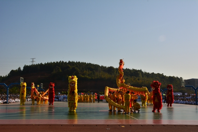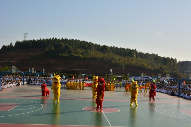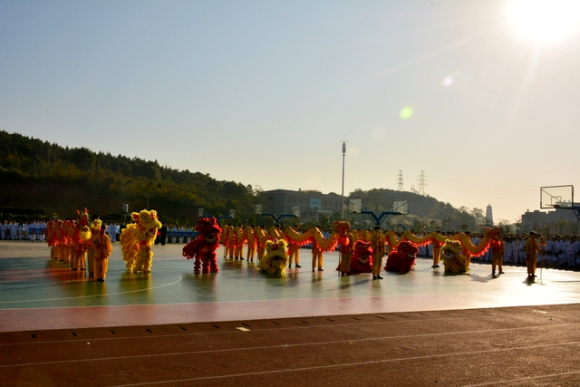 随后,学校龙狮队、武术队、健美操队和教职工广场舞队进行表演,把开幕式推向高潮。