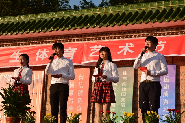 8:25分,校长罗湘云、财务总监梁晓芬、党支部书记毛小波、高中部学部主任黄建新、初中部学部主任曾良古及相关领导在主席台落座。随着四位中学生主持人闪亮登场,正源学校首届中学生体育艺术节开幕式拉开帷幕。