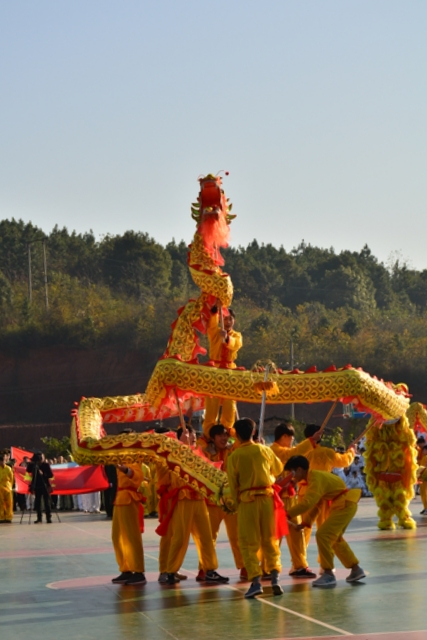 龙狮队器宇不凡。一条条金龙金光闪闪,鳞爪飞扬,威风八面,气宇轩昂;一只只雄狮怒目圆睁,利齿暴露,上下腾挪,锐不可当。这就是经过1840年鸦片战争以来一百多年血与火的沉痛洗礼后凤凰涅槃的中国,这就是经过1949年新中国成立以来近七十年激情与飞跃锻造后的华夏儿郎。