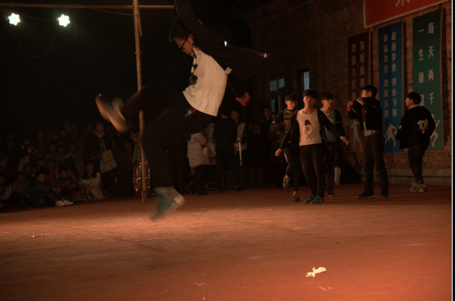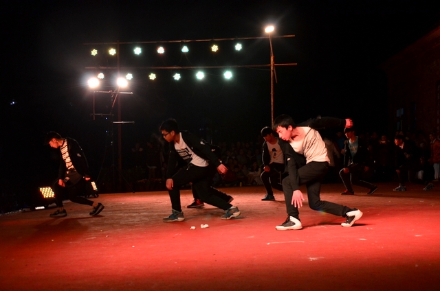 上个世纪60年代起源于美国、80年代传入中国的街舞,也被邓磊、孙海鹏等同学搬上了舞台,走、跑、跳等动作的有机组合,头、颈、肩、上肢、躯干等关节的屈伸、转动、绕环、摆振、波浪形扭动,上肢与下肢、腹部与背部、头部与躯干动作的协调,使人热血沸腾,激情澎湃。