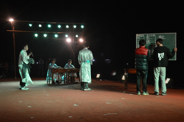 中学生时代,是青春靓丽的时代,既聪明活泼,又不乏顽皮叛逆。看看我们的这群活宝贝们,在课堂上是怎么样与老师周旋的,你的笑声可别影响周围的人观看演出喔。邝毅、陆林等同学表演的小品《乌龙学堂》让人忍俊不禁。