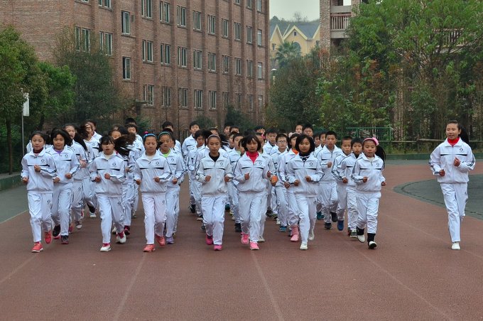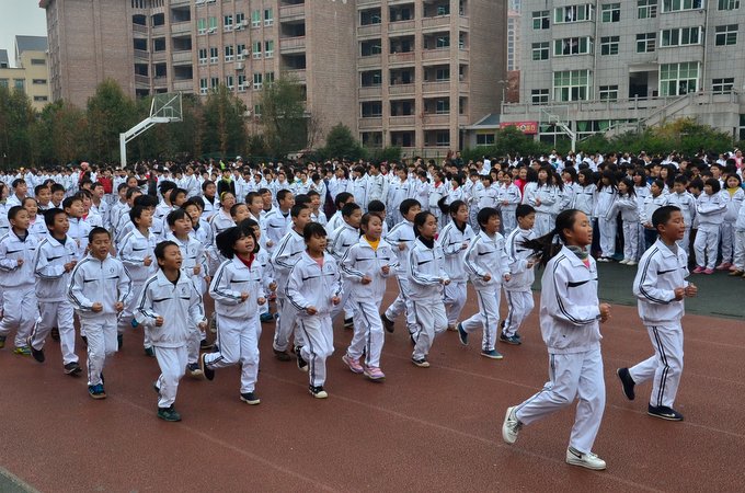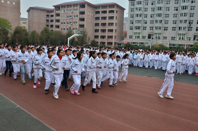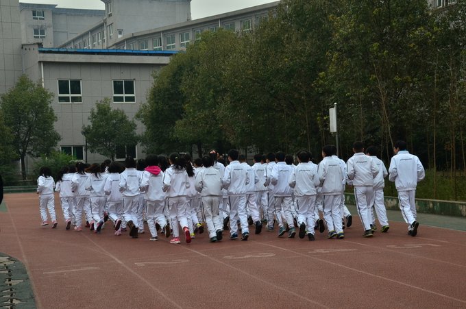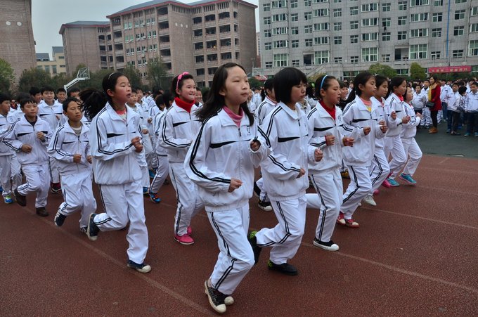 下午2:30分,伴随着激昂的乐曲,同学们准时集合,迈着整齐的步伐到达运动场,整队准备跑操。