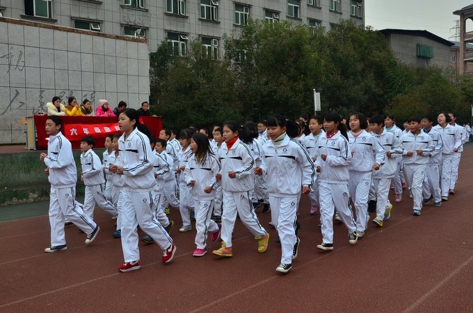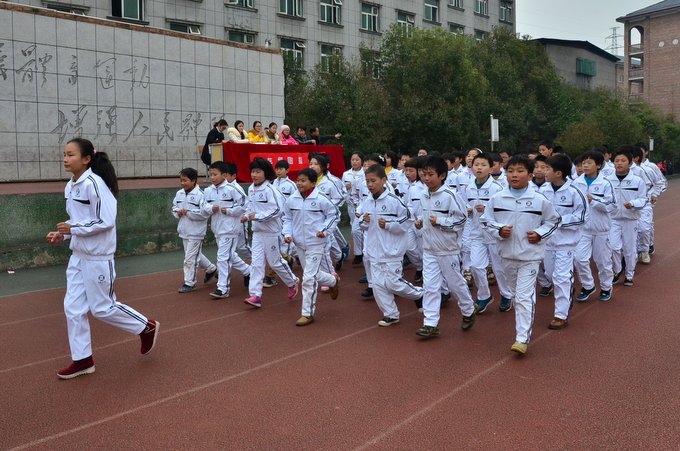 随着年级王主任的一声令下,紧张有序的比赛正式开始了。全部班级有序地围绕操场跑步。