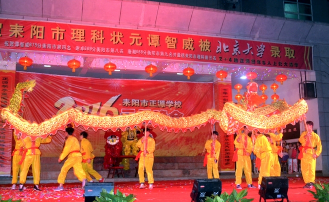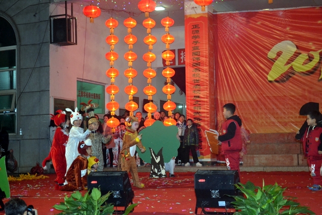 12月28日晚上6点, 花团锦簇,红灯高挂,一派节日盛装。回首昨天, 筑梦明天。2016文艺晚会在正源学校广场举行。