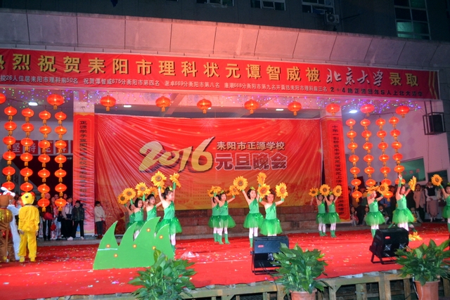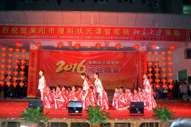 本次晚会共有小学部、初中部、高中部共19个节目参演,历时两个半小时。形式多样,内容丰富。校领导教职员工及学生共1万多人现场观看了演出,小学部大部分年级学生各自在本班同步收看电视直播。此次晚会的成功演出,充分展示了正源学校师生的活力和风采;凝心聚力,为正源2016年的辉煌奠定了基础。