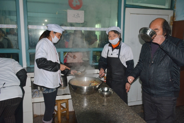 1月9日中午正开餐时间,罗校长到了四食堂,发现问题根本没有解决:大量学生排在打蒸肉的两个窗口,而其余多个打炒菜的窗口则几乎没有人,很显然,从炒菜到打菜工作都出了严重问题。罗校长压抑怒火直接安排并监督四食堂大师傅马上炒菜,解了燃眉之急。