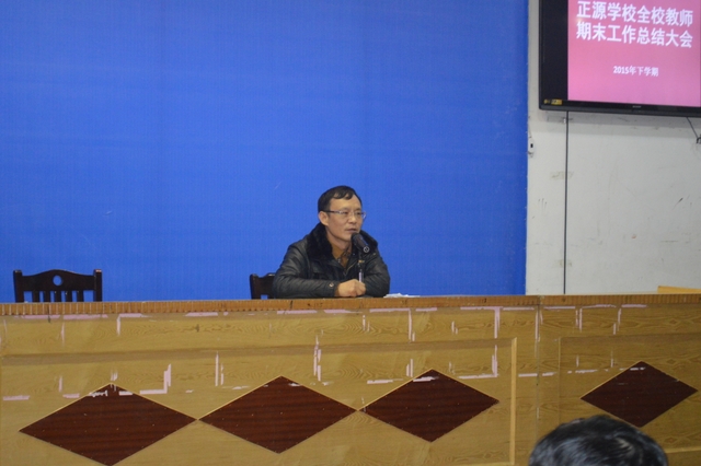 校长罗湘云、支书毛小波、办公室主任朱明芝、校长助理廖晴在主席台就座。会议由办公室主任朱明芝主持,校长罗湘云就年终及明年工作进行了部署。罗校长对2015年工作给予了充分肯定,指出期末要抓好期末组考、总结、财务结算及其他工作。罗校长强调,当前国际国内经济滑坡,许多学生家长反映钱难赚,但就是在这种形势下,正源学校还连读两年给老师涨了工资。一些老师每月涨了1000多元,每位教师的第十三个月工资从过去的600元增加到了2500元。马上又要放寒假了,高一、高二两个年级连暑假的有关费用都还未收上来,请各位初高中部的班主任做工作一并收上来。昨天中午12点,当场免了四食堂主任,因要他同时开4个让学生吃肥肉的窗口就是不落实,同时学生反映快吃完了才上小菜。昨天晚上,特意去励志班的161班开了个会,进行作风整顿,鉴于班主任任课多,工作量大,当场拍板减少他一个班的工作量,多出时间去坐班,力争尽快赶上其它两个励志班。高三要创造奇迹,要出成果,目标任务必须完成。教学是无底洞,要下苦功夫抓教学质量。教学和安全不能忽视,上段时间小学部教训深刻,一个学生一个星期没进校才报告,出了问题怎么得了?责任心哪去了?班主任及相关领导必须处罚到位。耒阳这段时间出现了留守老人和留守儿童死于家中而未被及时发现的不幸事件,触目惊心,给了我很大刺激。