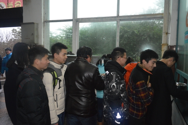 食堂排队就餐,重温母校生活