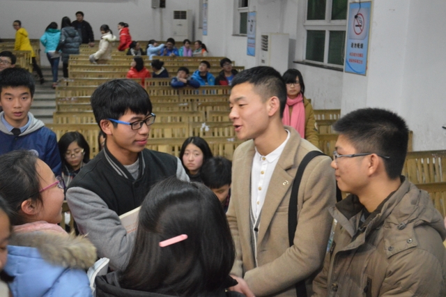 听讲的学生在现场互动环节与学长进行了多方交流,深受鼓舞。宣讲活动结束时,大家意犹未尽,学长们留下了联系方式,以便以后进一步交流。