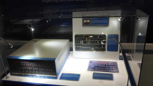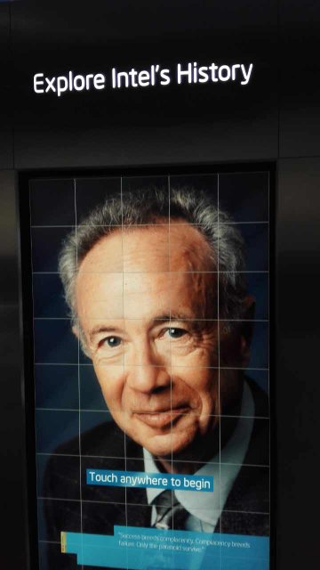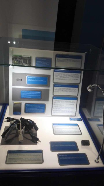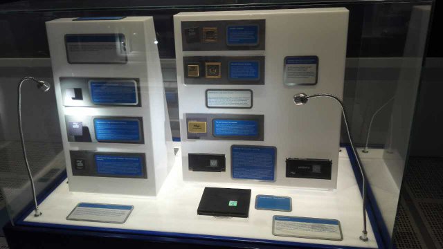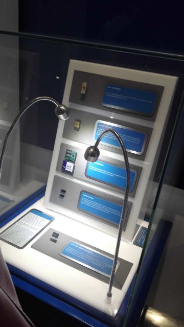 离开谷歌,下午我们来到了位于加州圣克拉拉的罗伯特诺伊斯大厦的英特尔公司总部,参观了里面的Intel博物馆。博物馆创建于20世纪80年代,占地3500英尺,左边区域是展览部分,包括的展厅有:发展史、整合、品牌推广计划、组装及测试、晶圆制造厂、摩尔定律、半导体科学、晶片设计、二进位码、数位变革、时空宝库。这些展厅陈列了英特尔公司的产品和历史展品。