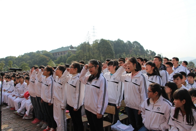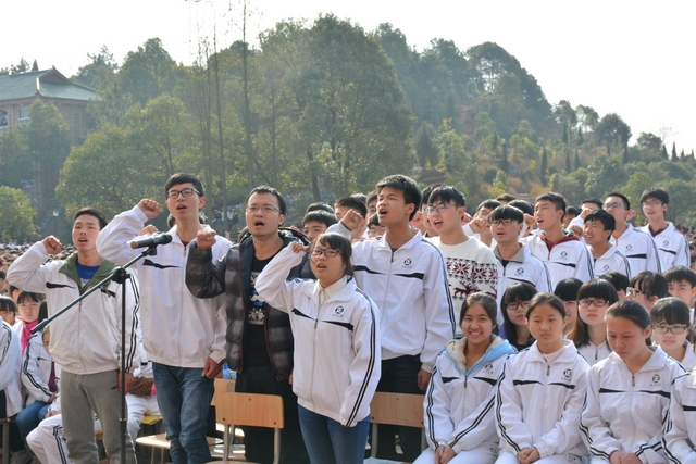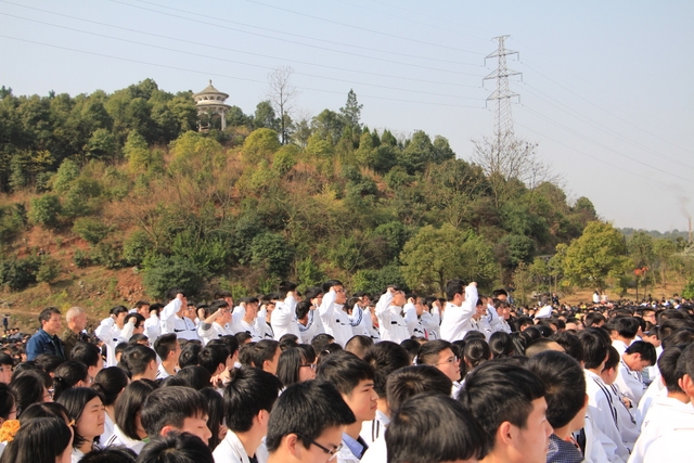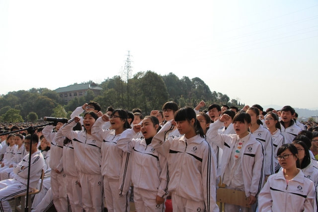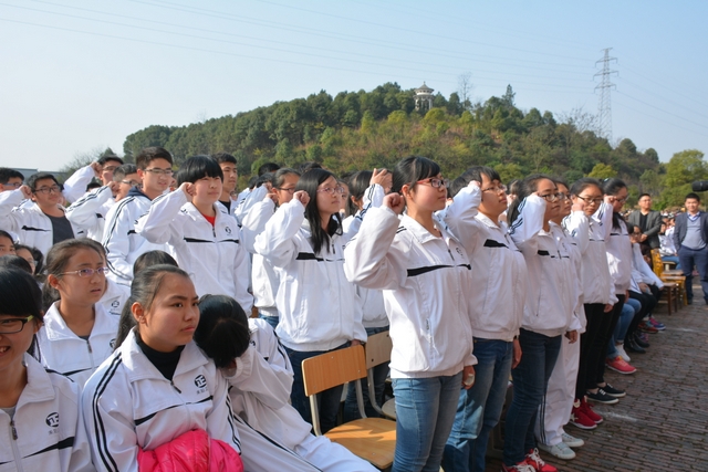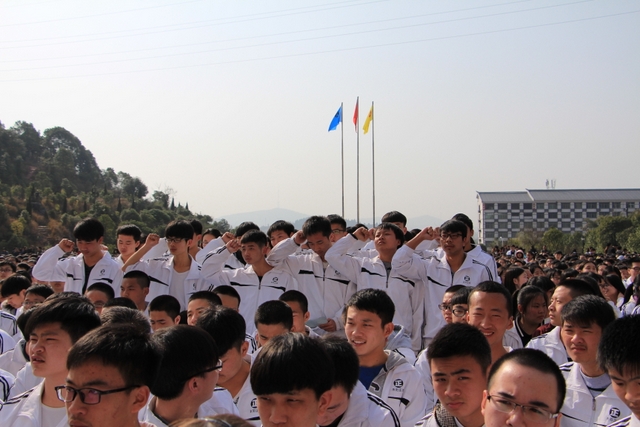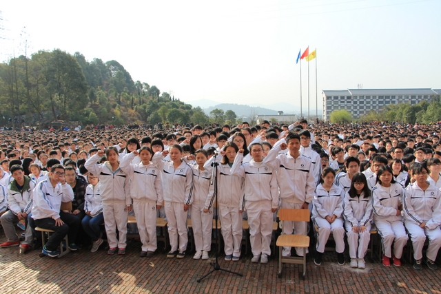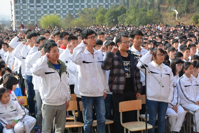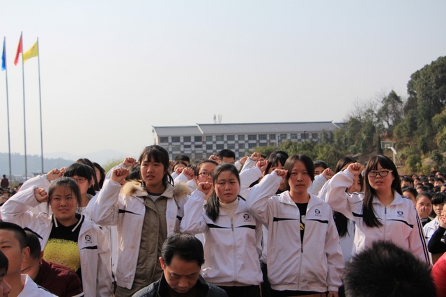 高三全体教师也高握右拳,向学校、向学生庄严宣誓。