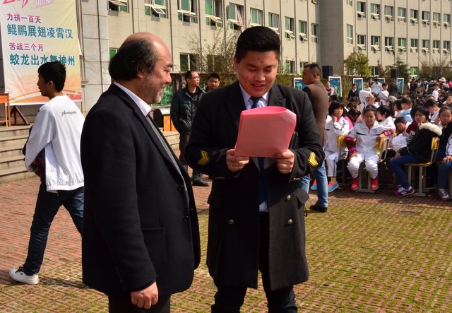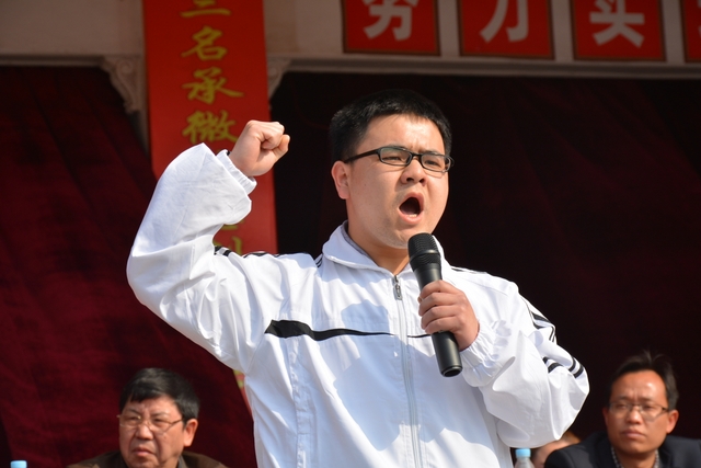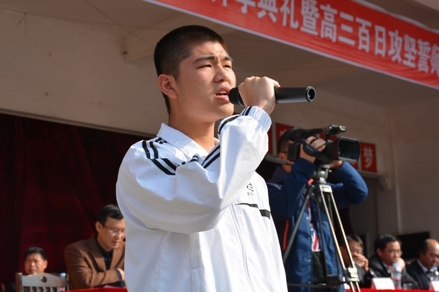 学校办公室主任、高三年级主任朱明之在高三学生宣誓之前,慷慨陈词,对学生提出了抱雄心,树信心,持恒心三点要求,要求老师们扎实做好知识传授、学法指导和心理疏导等工作,圆满完成学校下达的高考指标任务。