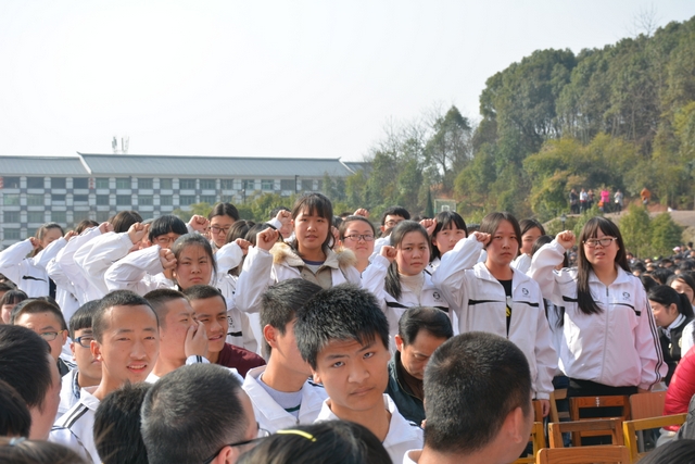 高三18个班一千多名学生,分别在领誓学生的带领下,全体起立,右手握拳,分班宣誓。各班学生激情高涨,斗志昂扬,声如洪钟,气贯长虹,决心大如天,意志坚如钢,表示决战三个月,苦拼一百天,敢打敢拼,敢为人先,努力实现自己的人生梦想,为父母、为母校交上一份出色的答卷。