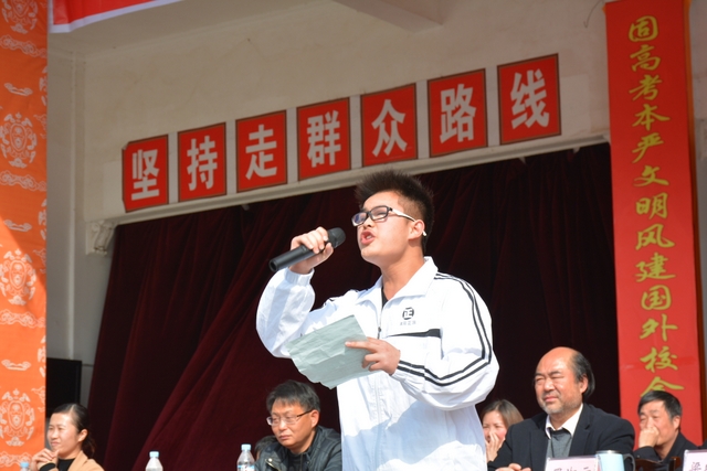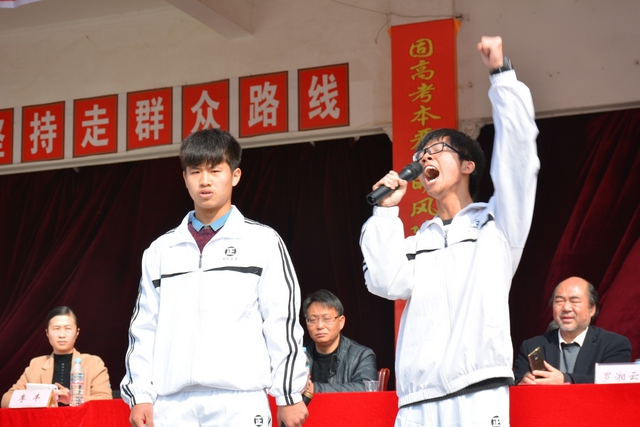 学校党支部书记毛小波就高考百日攻坚提出了惜时、自信、拼搏、感恩、效率、传承六点希望。小学部教师李菊凤、学生周龙结,初中部教师欧阳湘平、学生黄佳奇,高中学生李学作为各学部的代表,分别上台发言,抒发新的学期,以新的姿态,开创新的局面,取得新的更大的成绩的豪情和壮志。