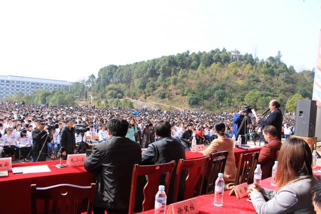 2月29日上午,春光明媚,全校15000多名师生齐聚学校广场,2016年春季开学典礼及高考百日攻坚誓师大会在这里隆重举行。校长罗湘云出席大会并发表主旨讲话。