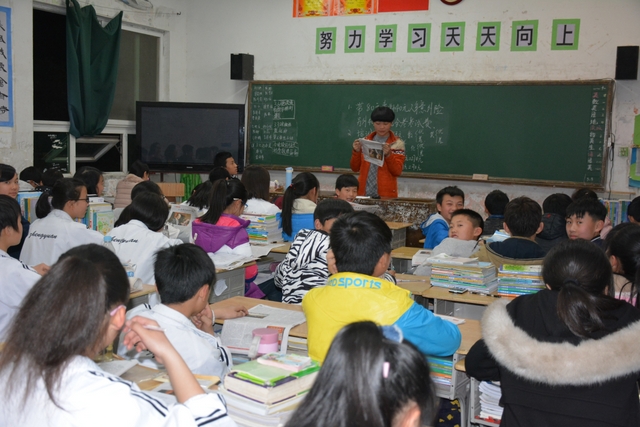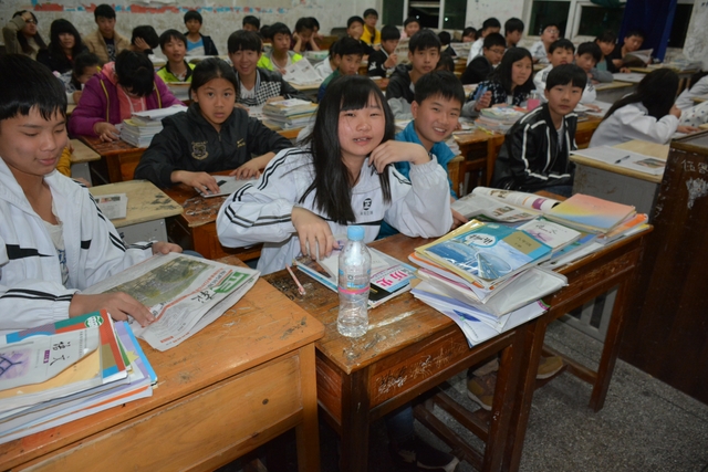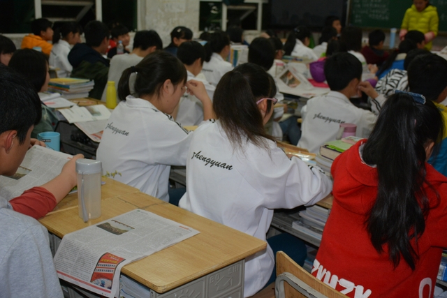 声音洪亮的学生在讲台上读报纸,貌似很有气场